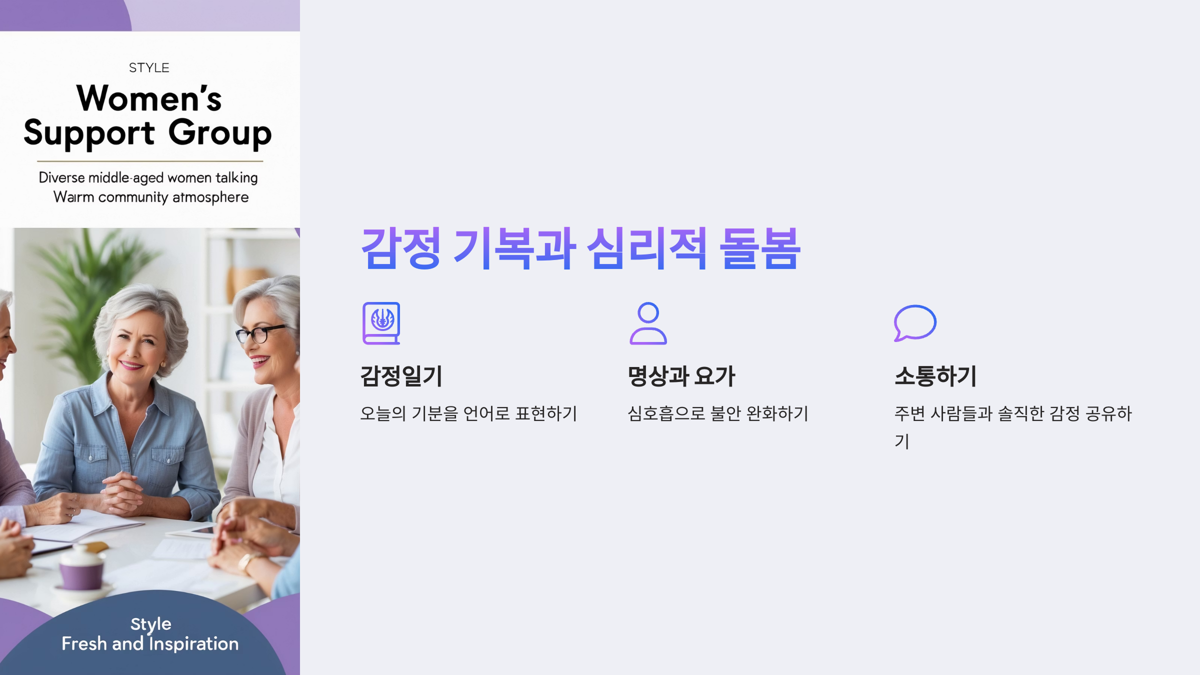 | 정신적 변화 | 우울감, 집중력 저하, 불면증, 감정 기복 |