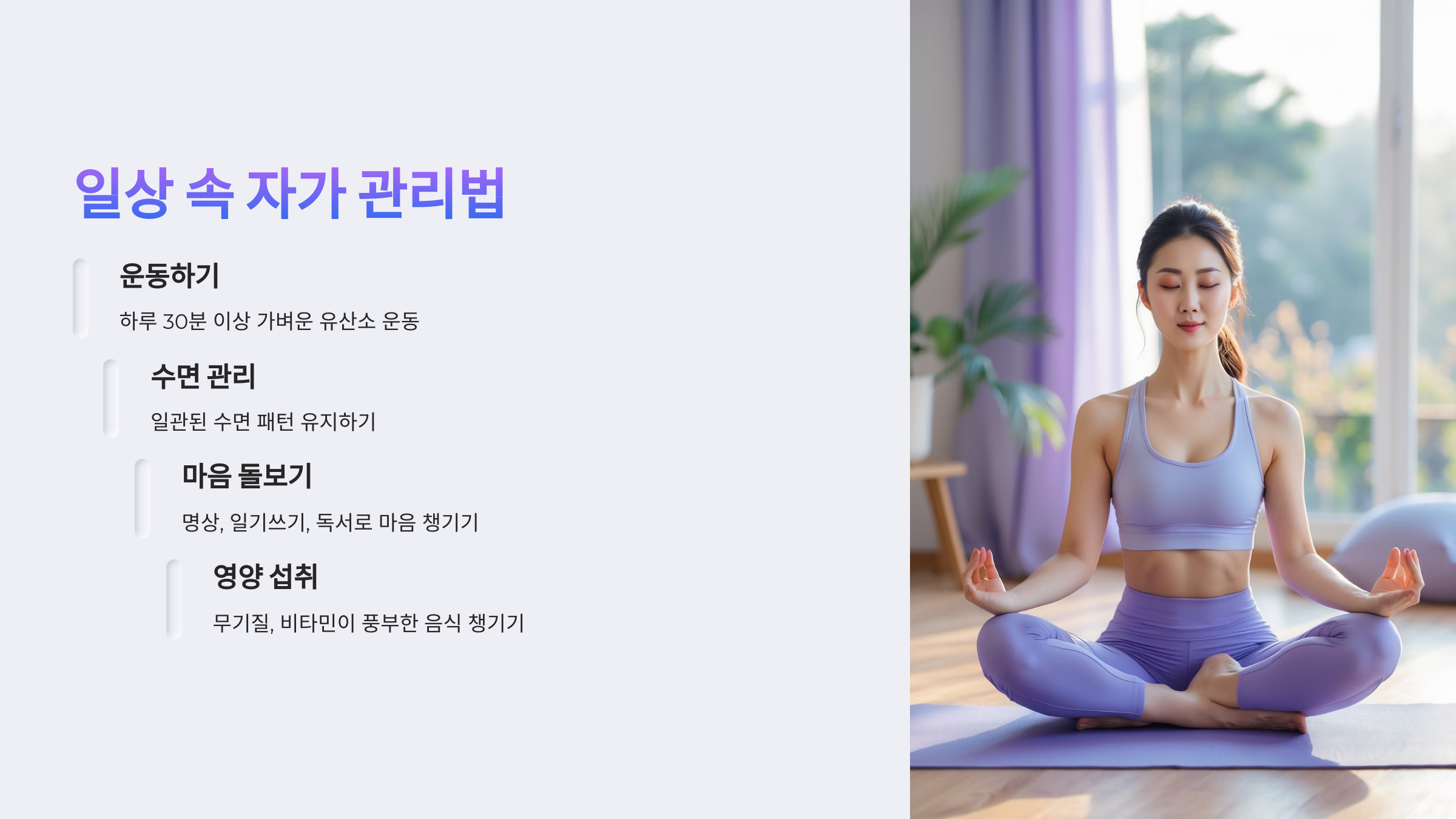 - 심호흡, 명상, 요가 등으로 불안 완화하기