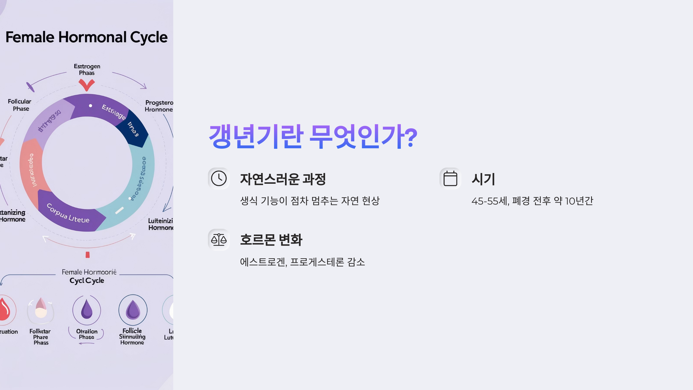 갱년기란 생식 기능이 점차적으로 멈추는 자연스러운 과정으로,