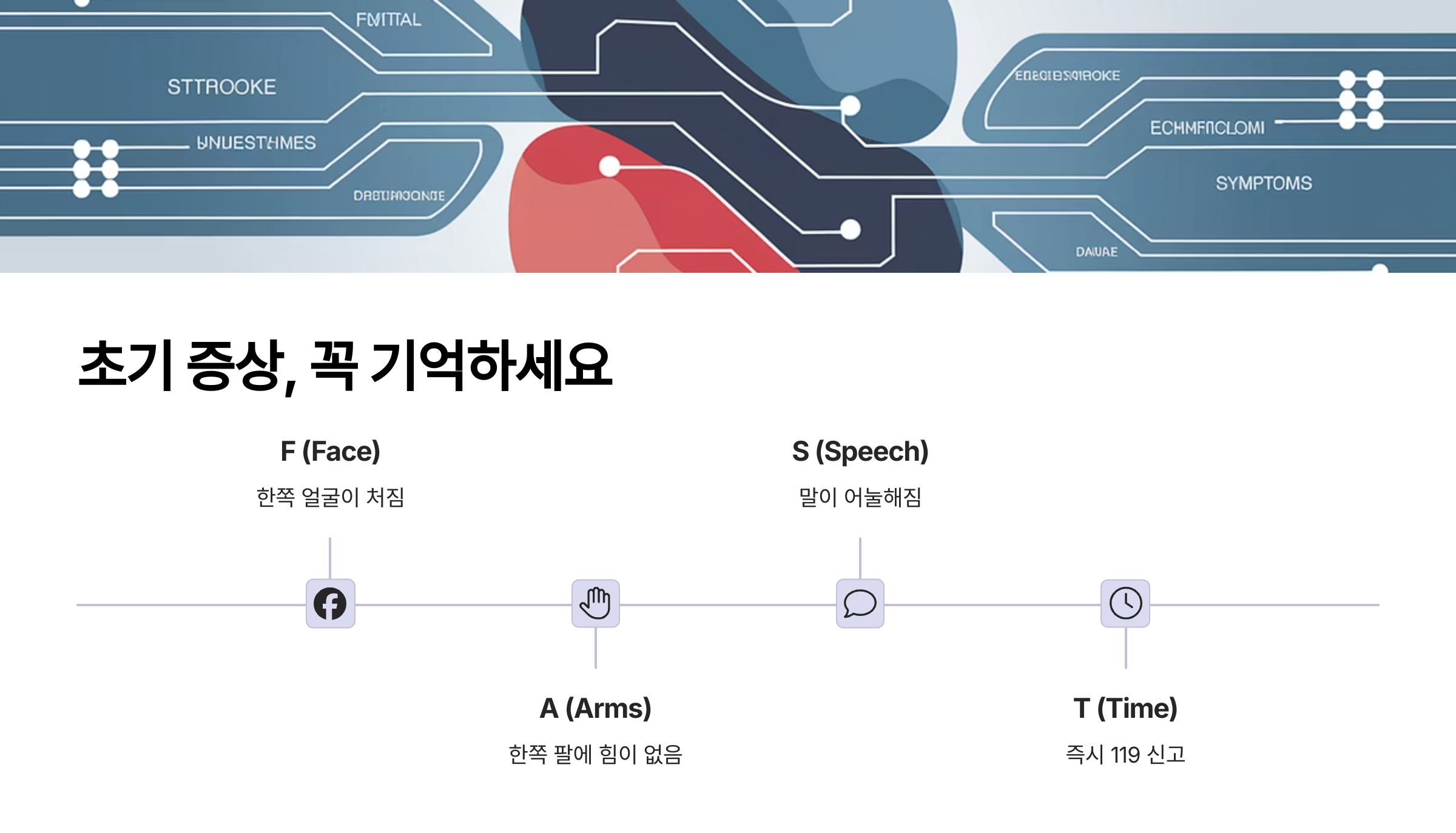 | S (Speech) | 말이 어눌해지거나 이해하기 어려움 |