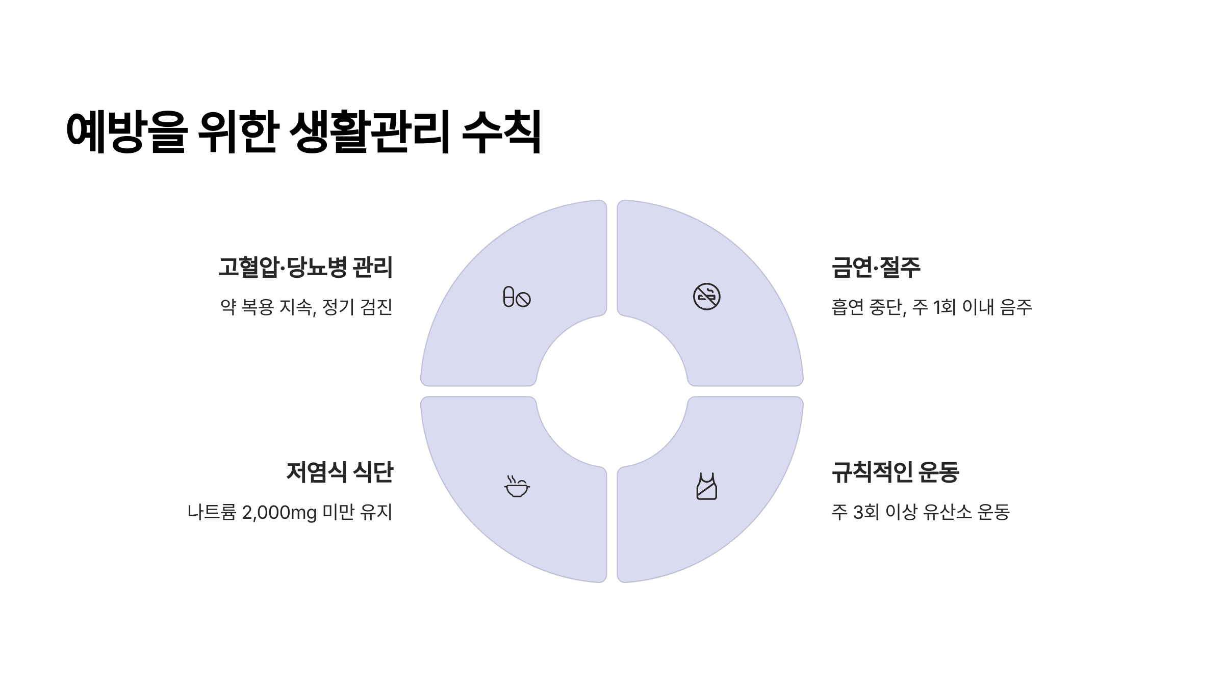 | 금연·절주 | 흡연 즉시 중단, 음주는 주 1회 이내 |