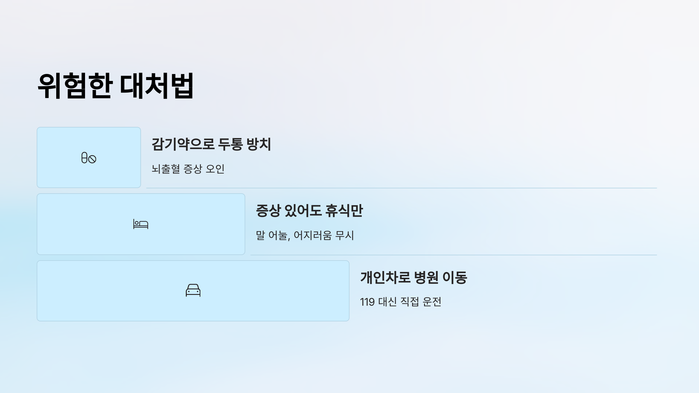뇌출혈이 의심될 경우 즉시 응급실로 이동해