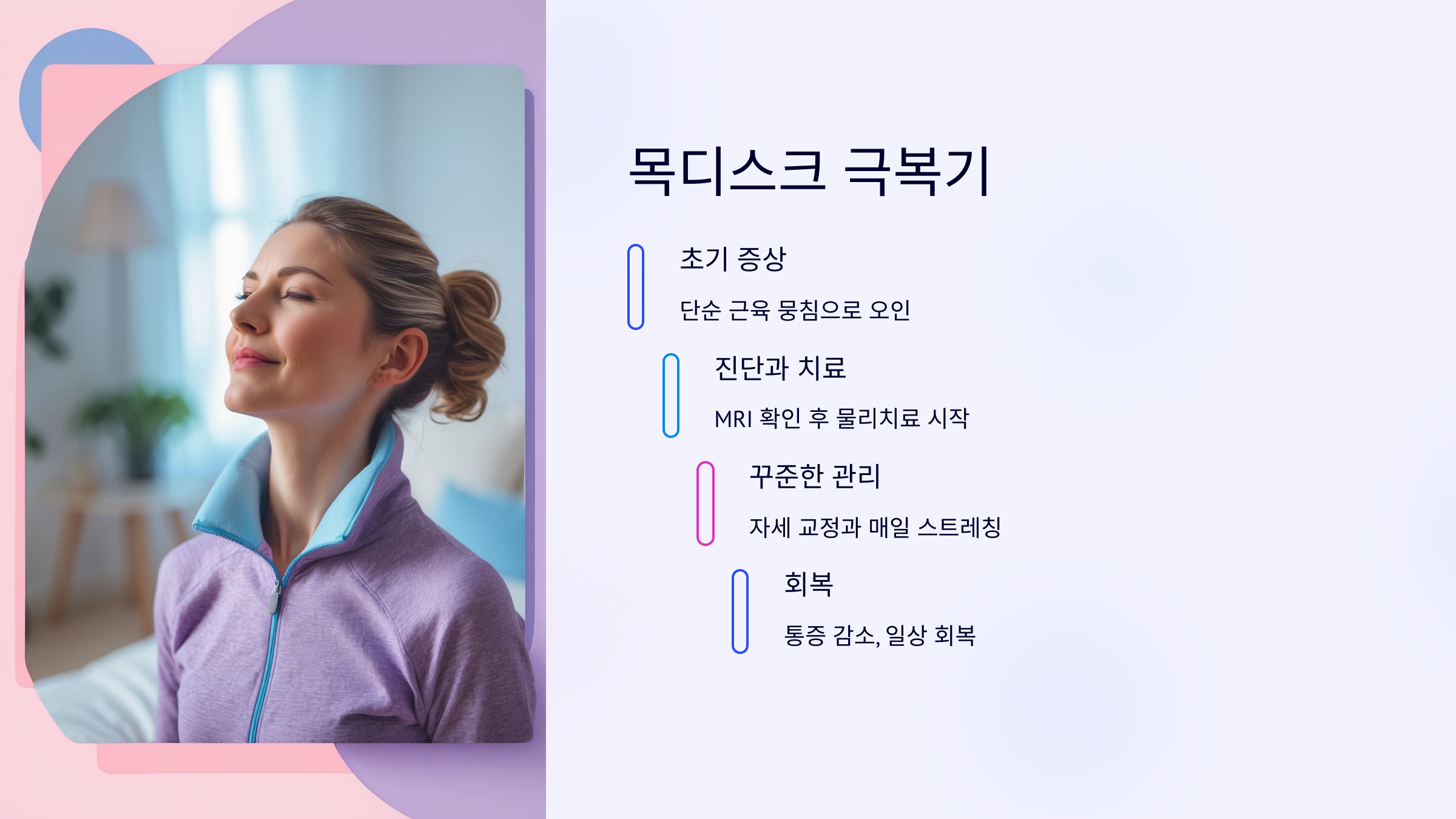 지금은 하루에 두 번, 목 스트레칭을 습관처럼 하며 잘 관리 중입니다.