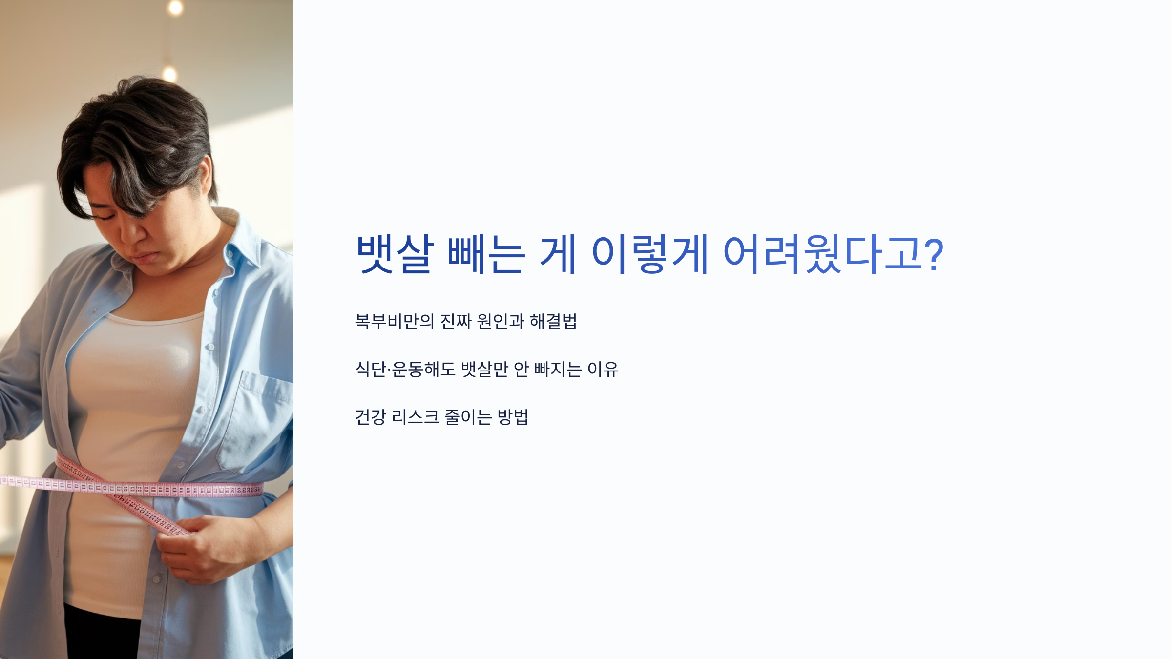 복부비만은 단순한 뱃살을 넘어서 건강과 직결된 문제라 더 민감할 수밖에 없어요.