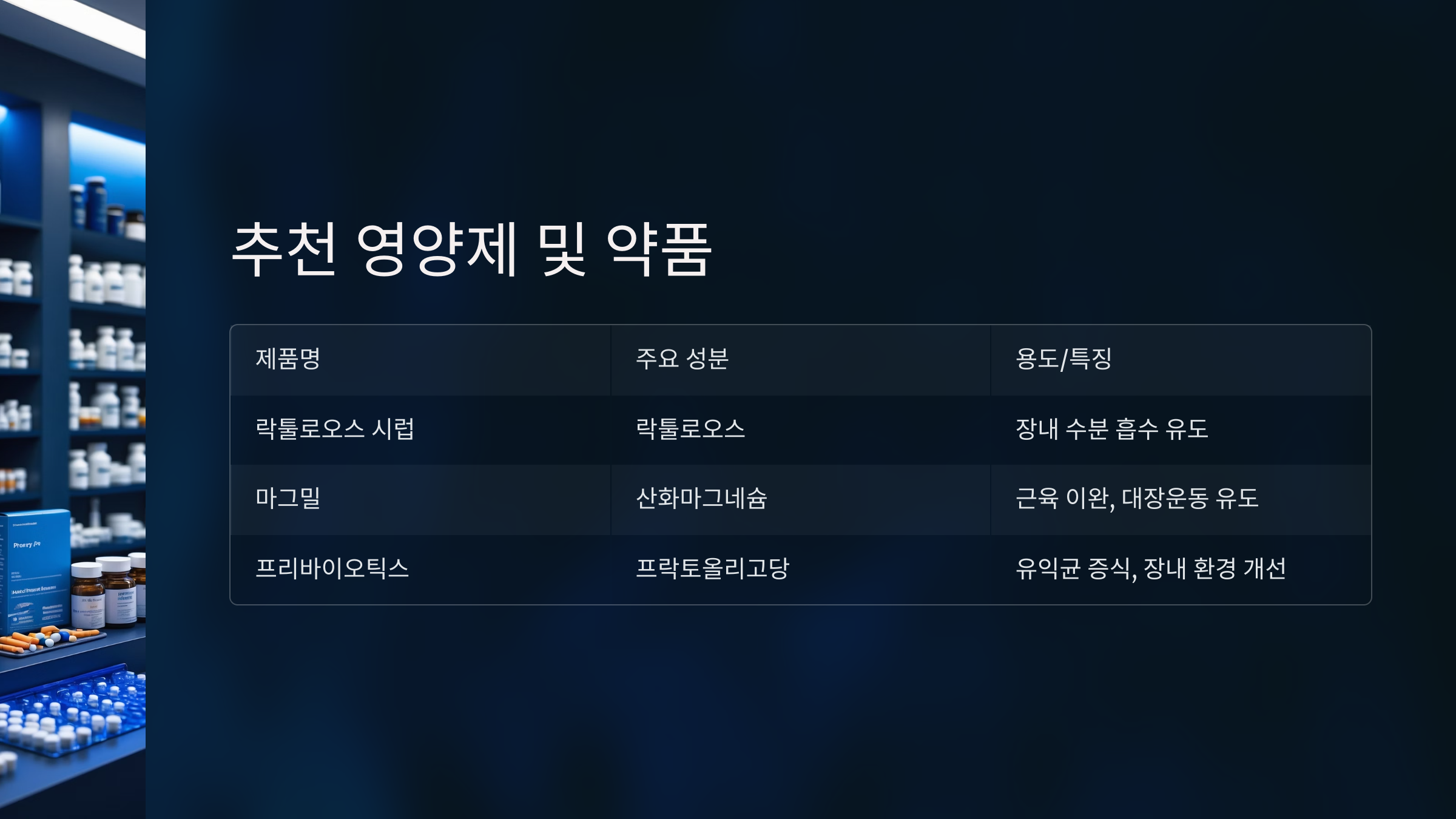 장이 약에 의존하게 될 수 있으므로 가급적 생활습관 개선이 우선입니다.