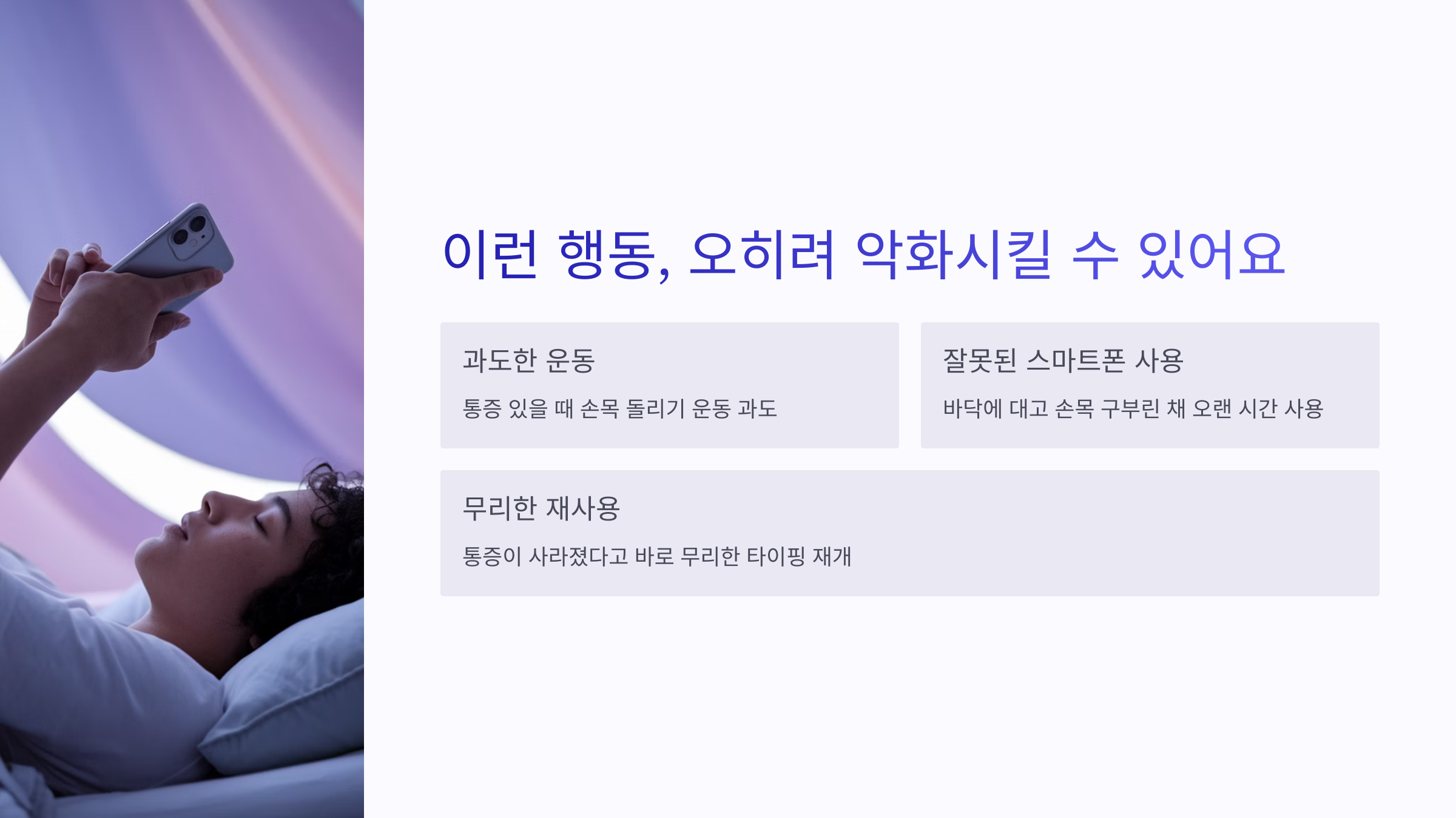 | 밤에는 손목 보호대 착용 | 자는 동안 손목 꺾임 방지 |