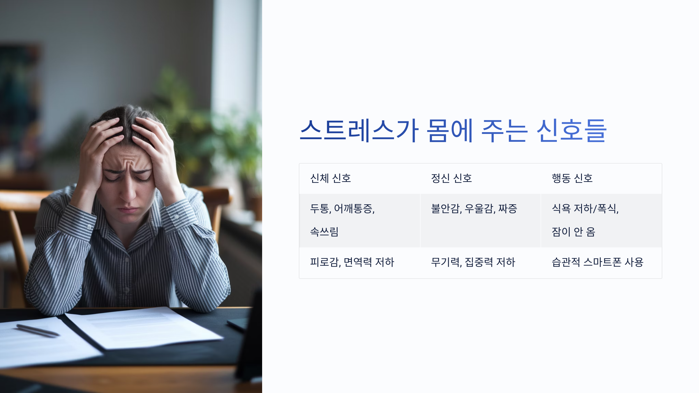 - 스트레스는 마음의 문제다 → ❌ 몸도 분명히 반응해요