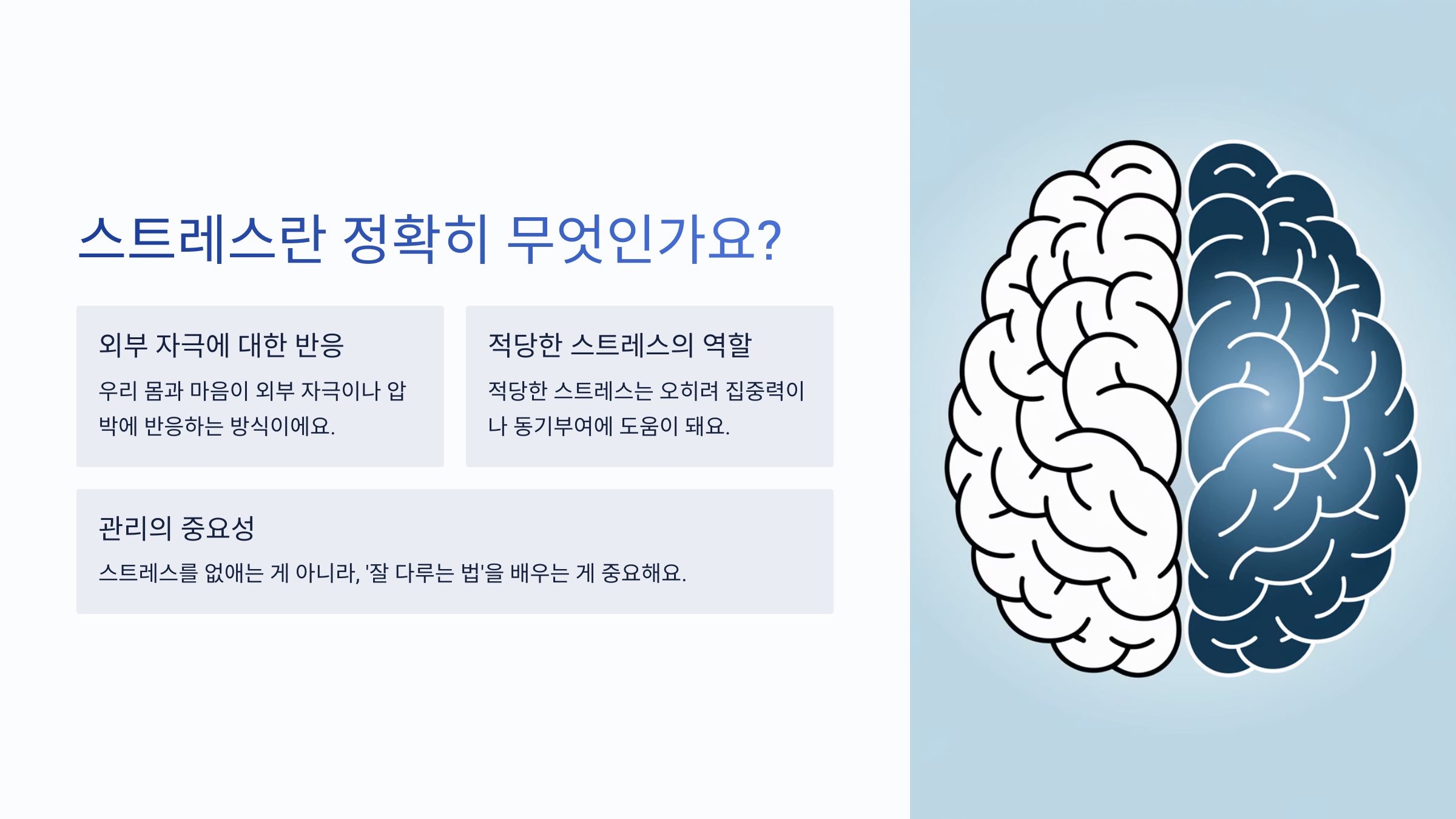 중요한 건 스트레스를 없애는 게 아니라, ‘잘 다루는 법’을 배우는 거예요.