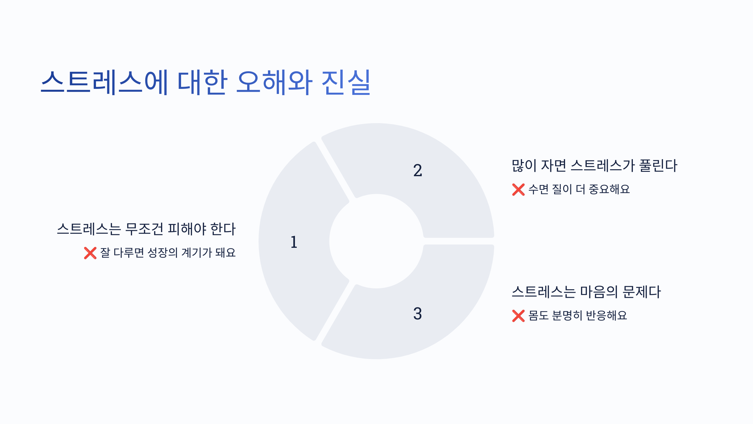 - 많이 자면 스트레스가 풀린다 → ❌ 수면 질이 더 중요해요
