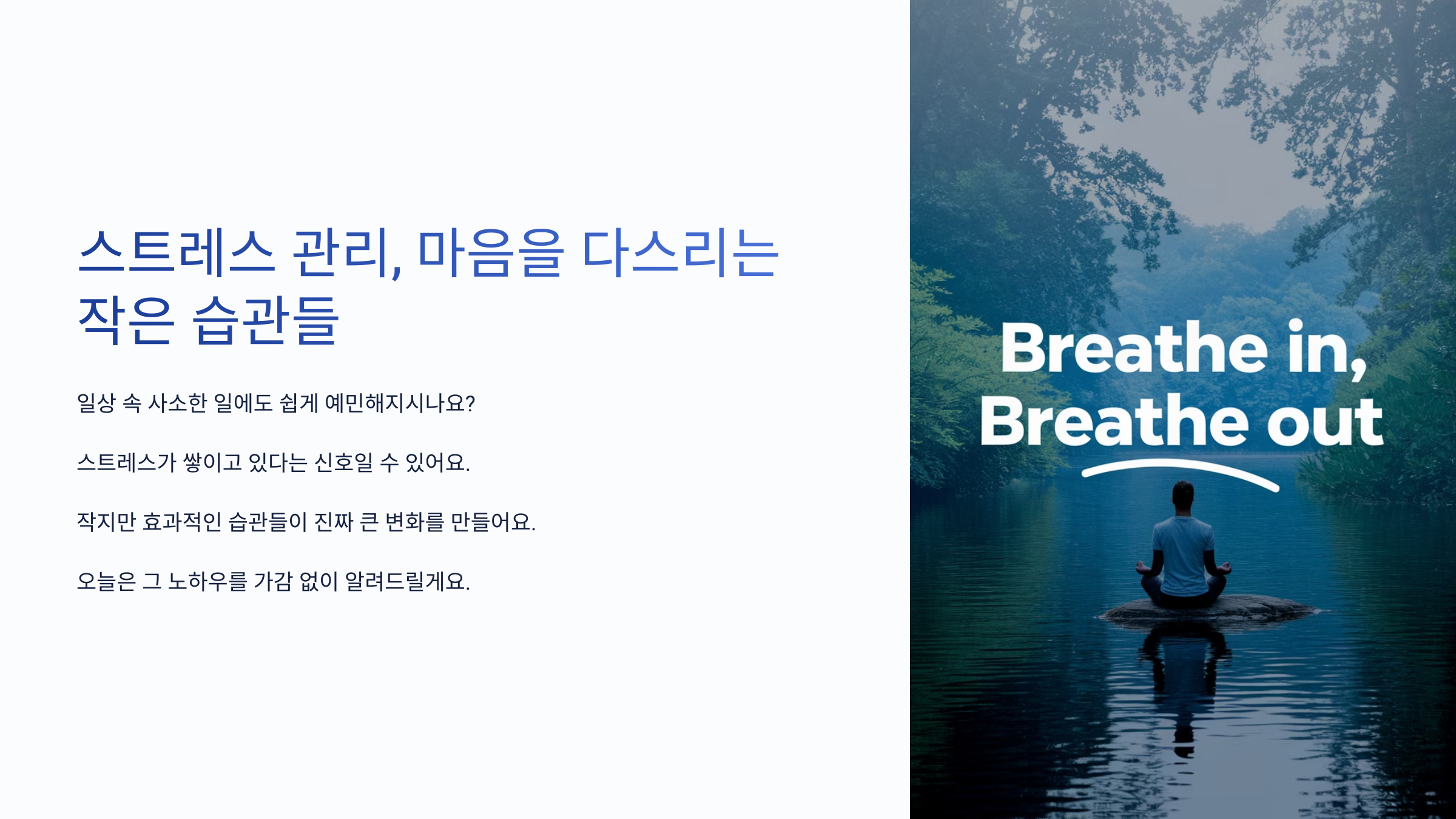 오늘 알려드린 방법 중 하나라도 실천해보세요. ‘아, 나한테 이런 시간도 필요했구나’ 싶으실 거예요.