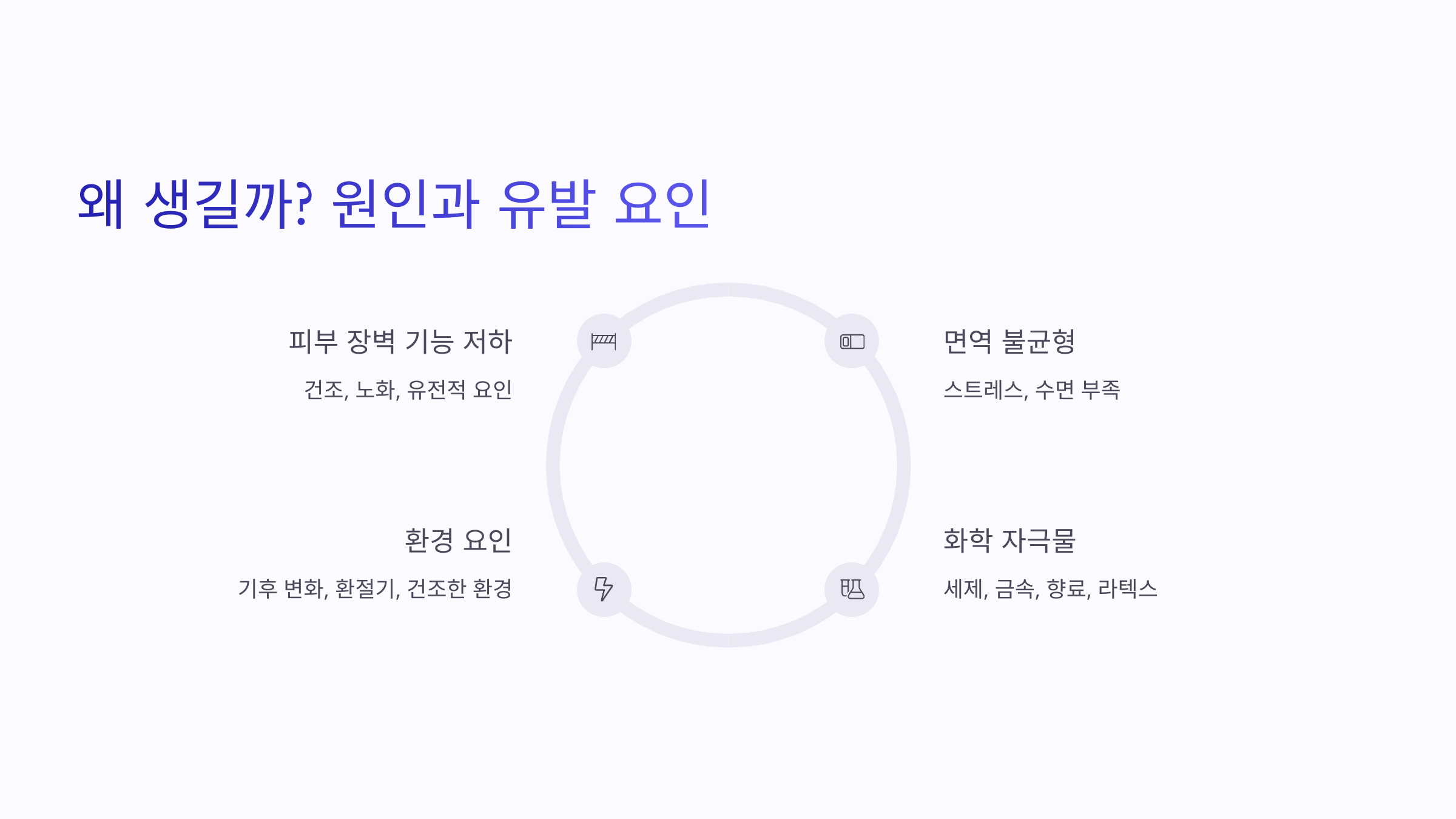 - 피부 장벽 기능 저하 (건조, 노화, 유전 등)