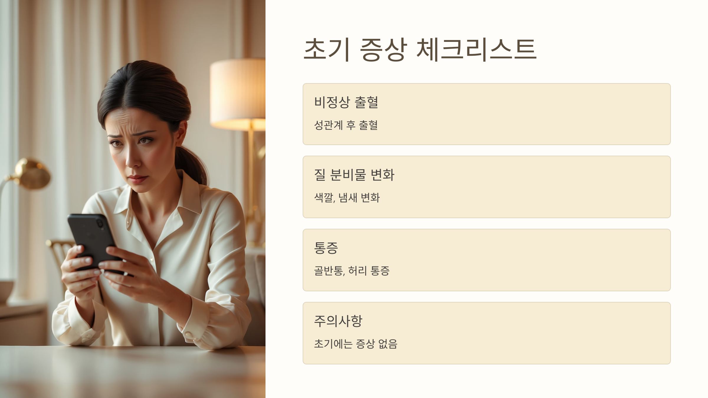 자궁경부암은 초기에 별다른 증상이 없기 때문에 정기적인 검진이 중요해요.