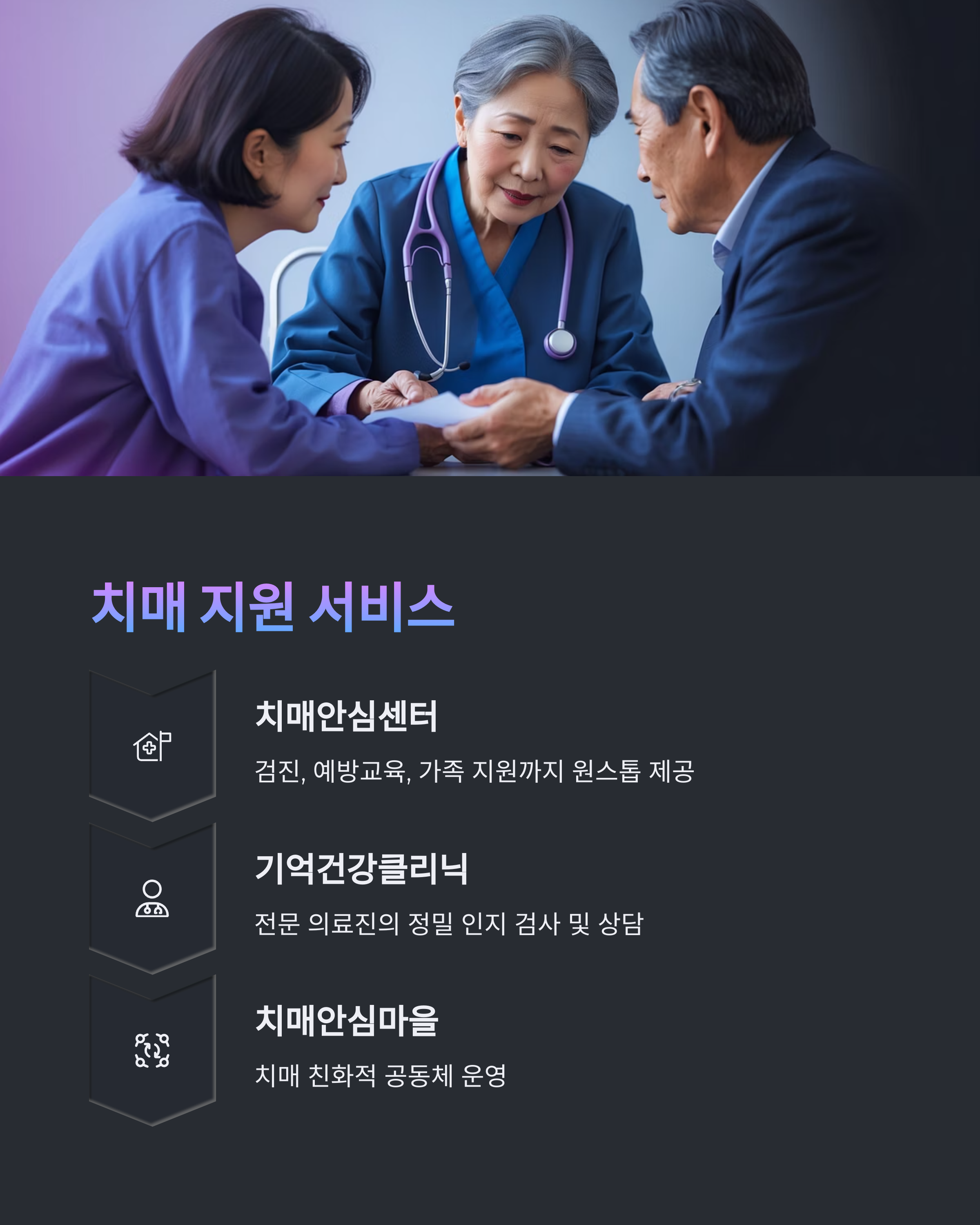 | 치매안심센터 | 검진, 예방교육, 가족 지원까지 원스톱 제공 |