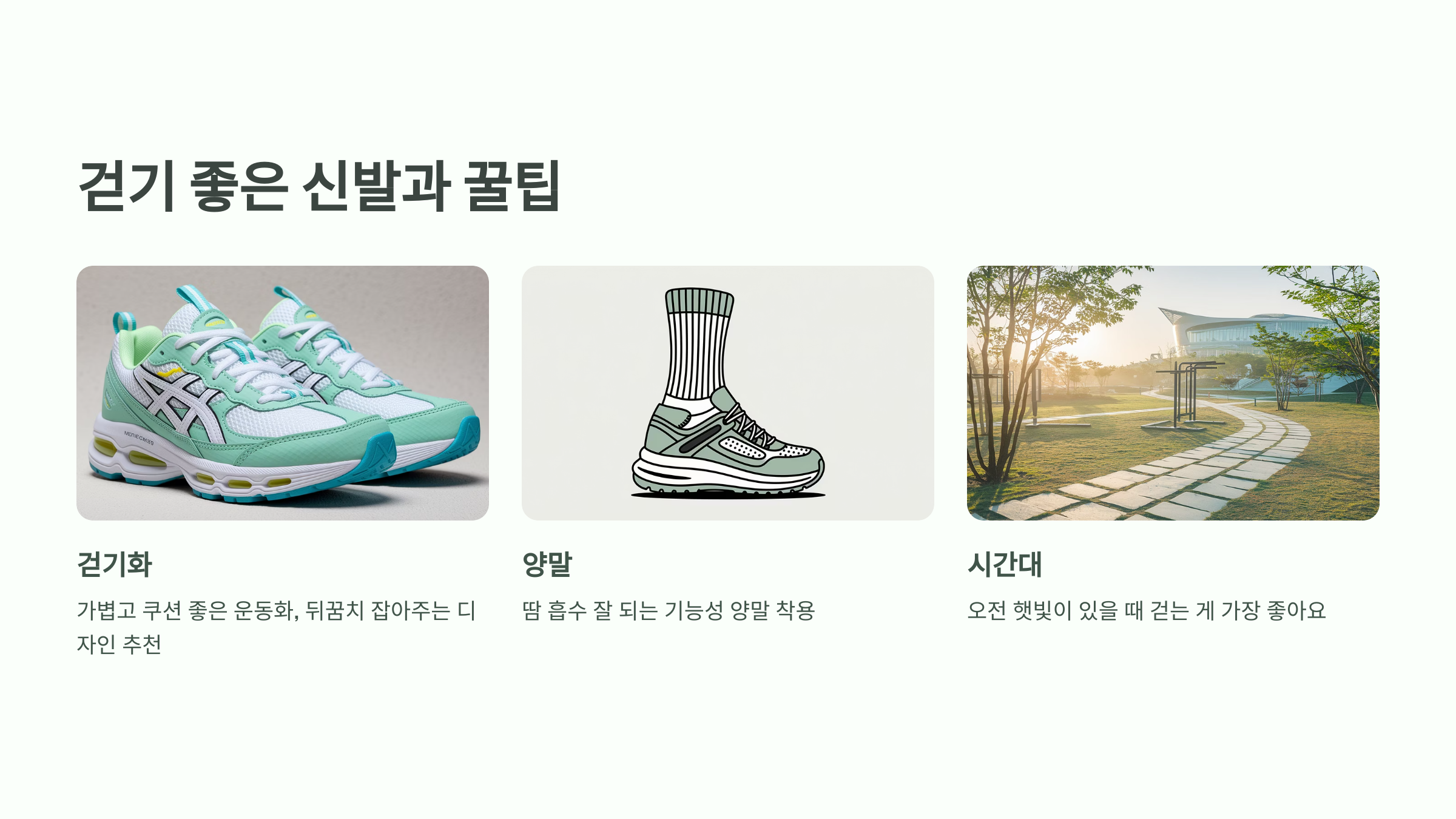 | 시간대 | 오전 햇빛이 있을 때 걷는 게 가장 좋아요 |
