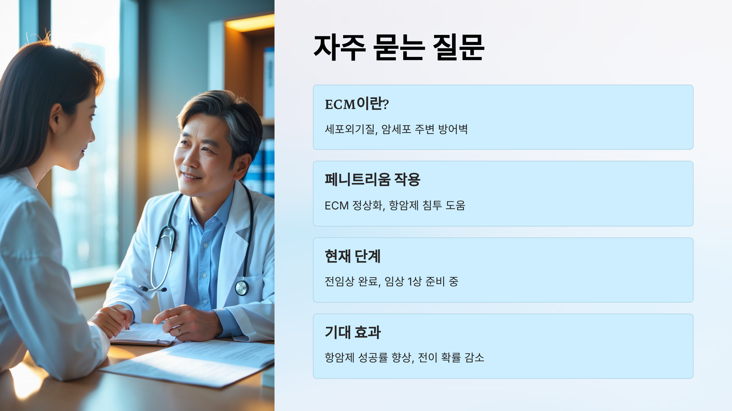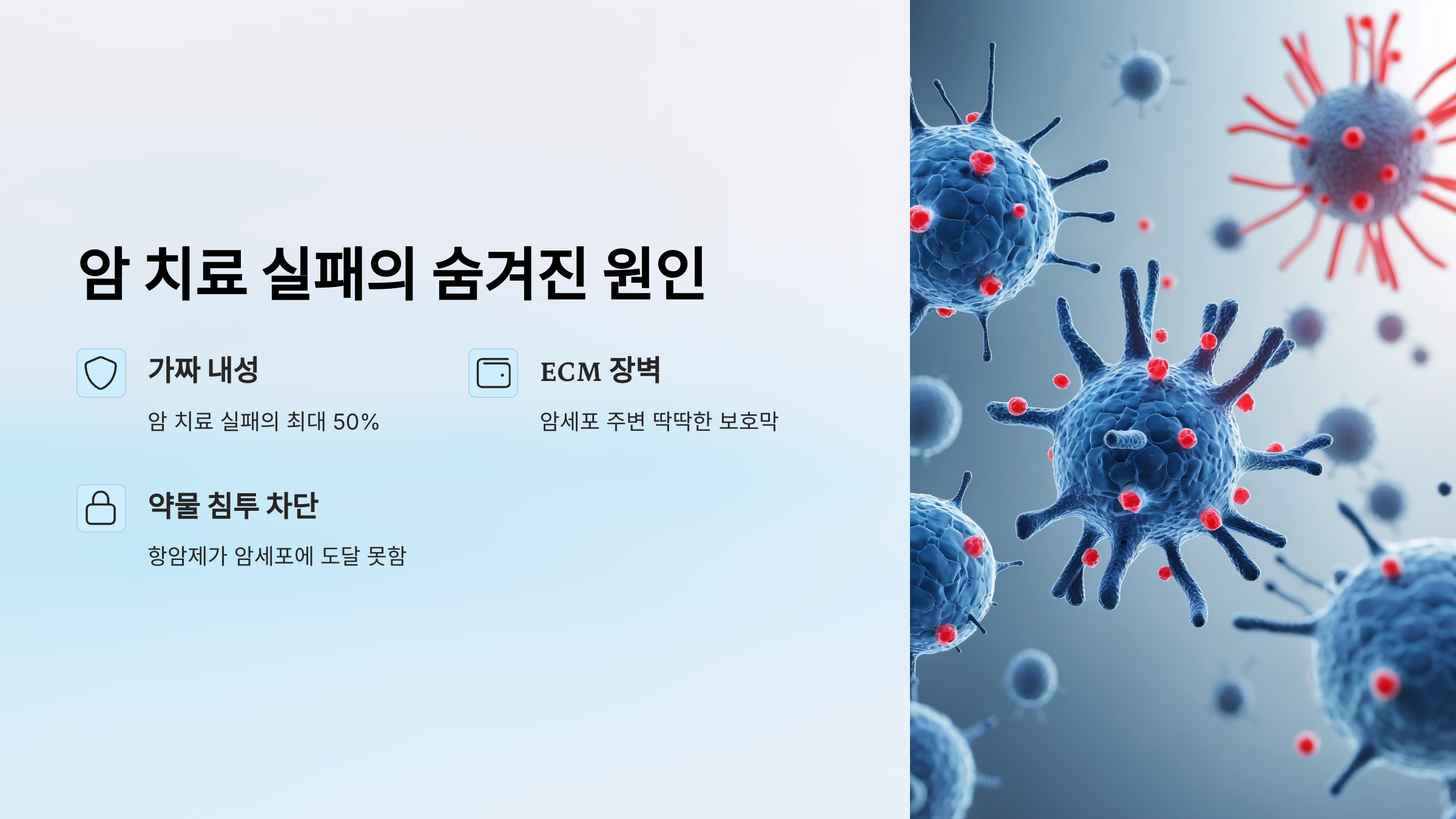 | ECM 병용 치료 | 세포외기질 정상화 병행 | 치료효과 ↑, 전이율 ↓ |
