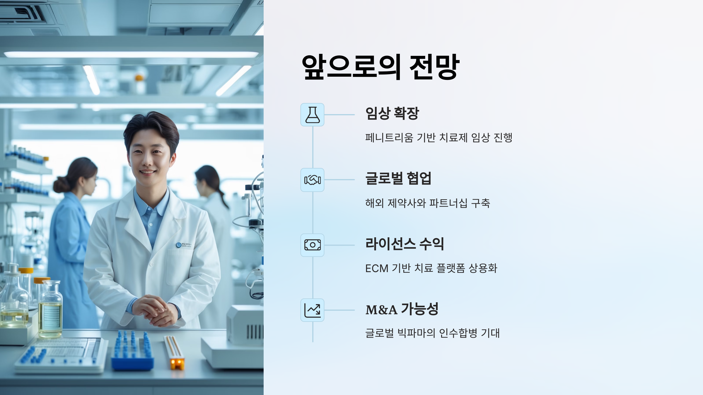 - ECM 기반 치료 플랫폼으로 라이선스 수익 가능성