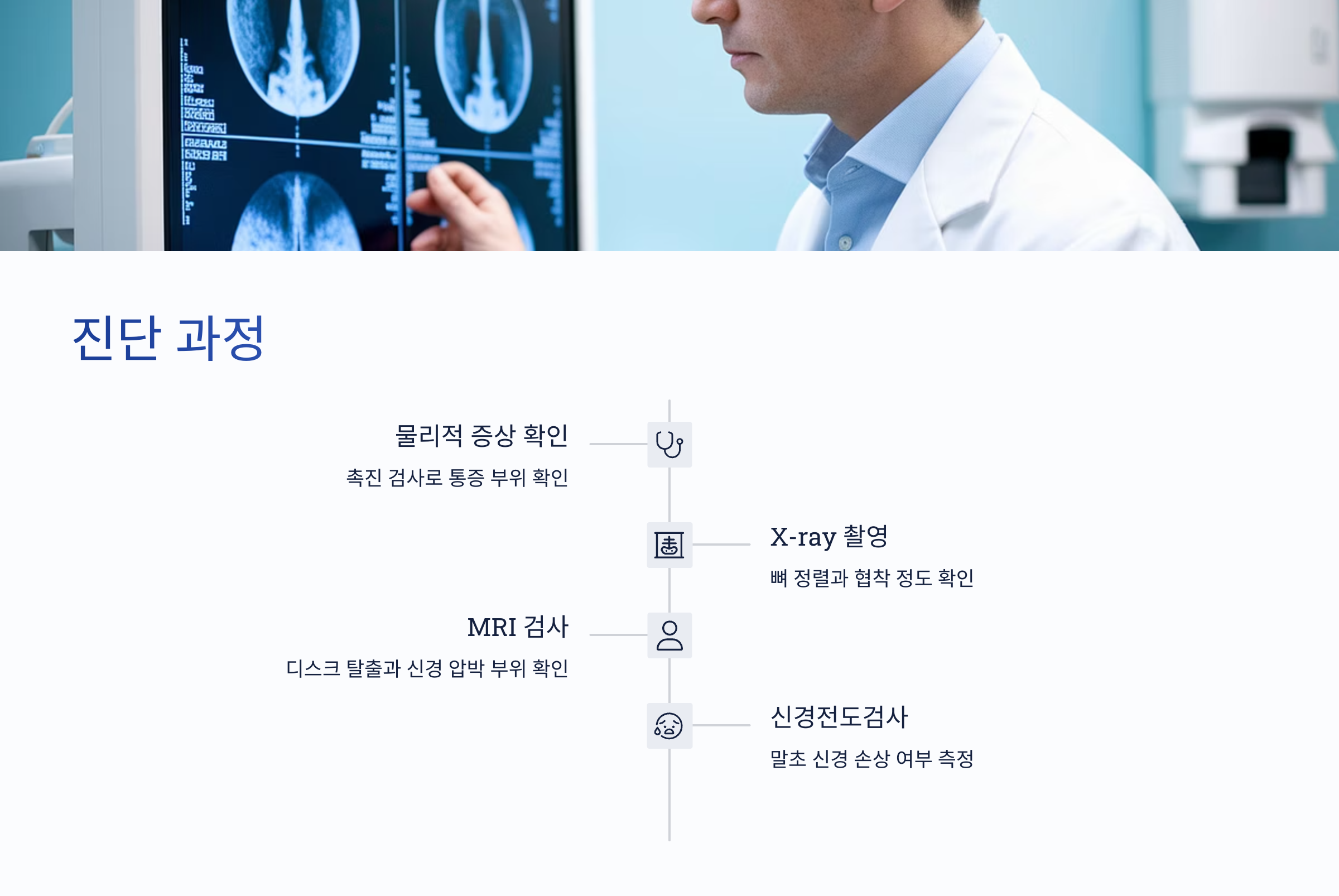 각 검사는 디스크의 상태와 신경 압박 정도를 확인하기 위해 선택적으로 이루어집니다.
