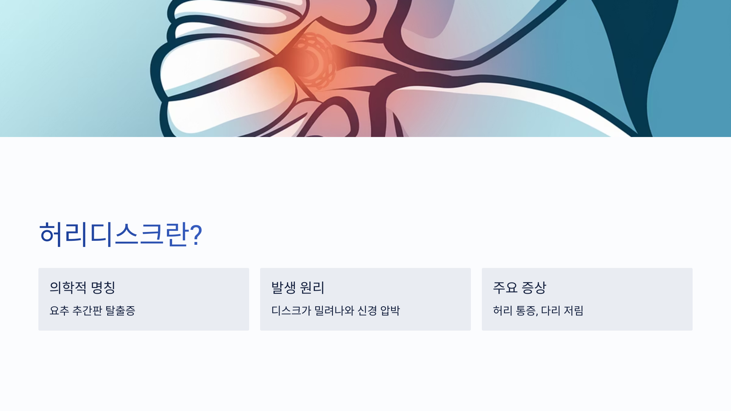 | 허리 통증 | 앉거나 숙일 때 통증이 심해짐 |