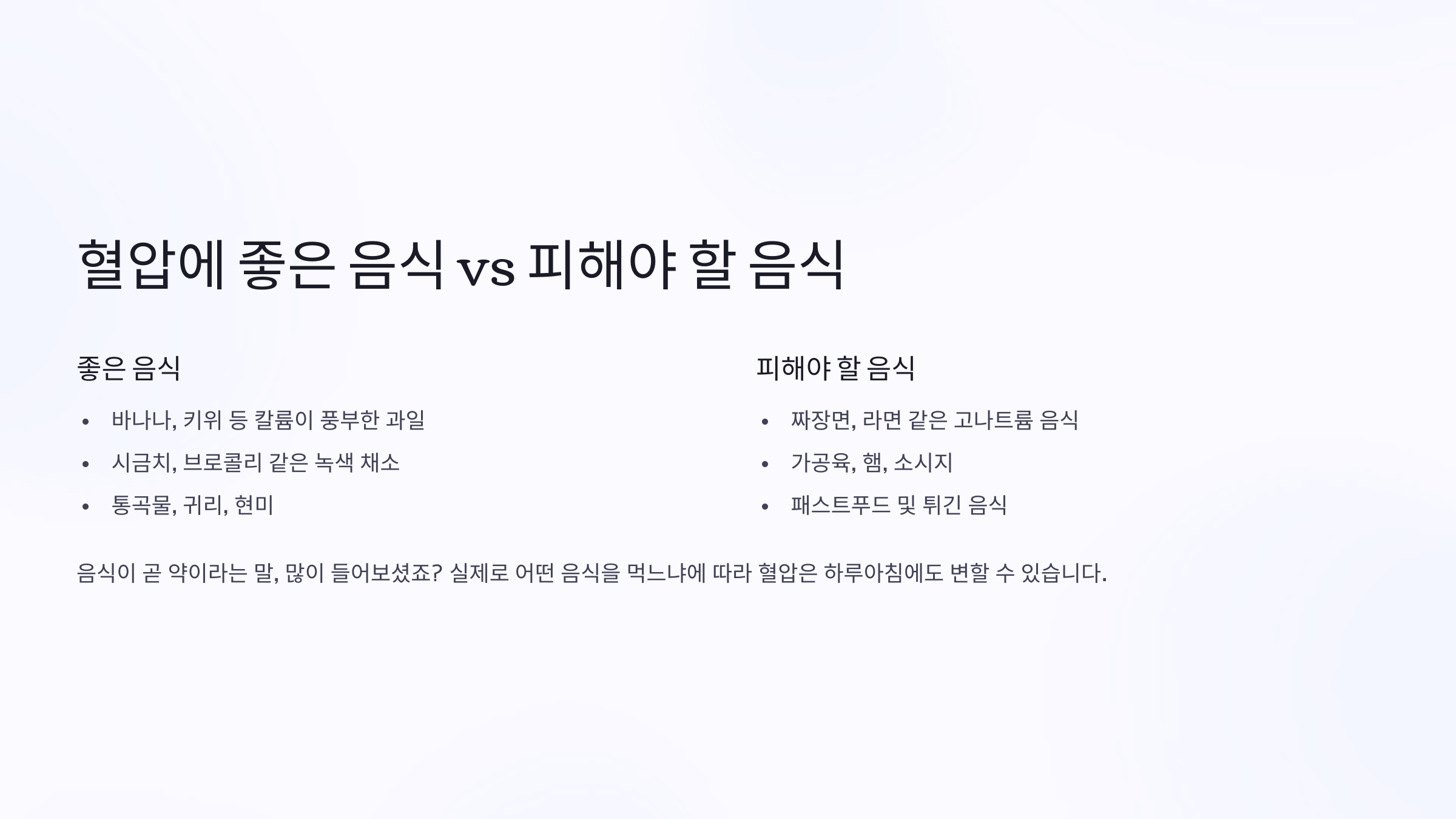 혈압에 좋은 음식 vs 피해야 할 음식