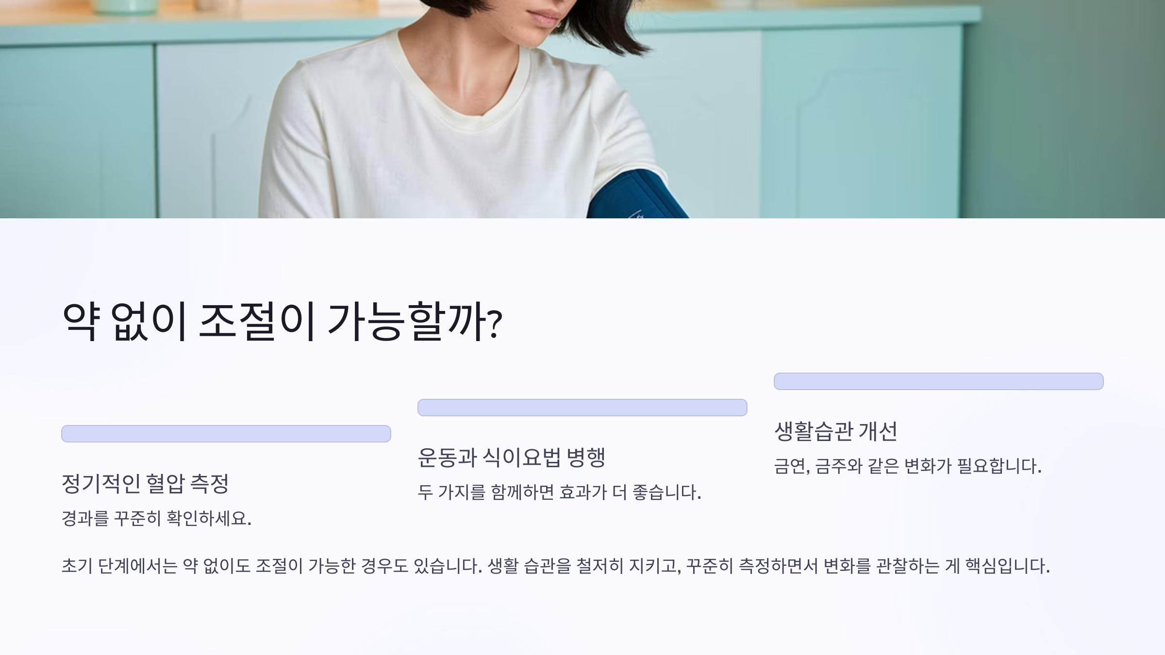 - 정기적인 혈압 측정으로 경과 확인