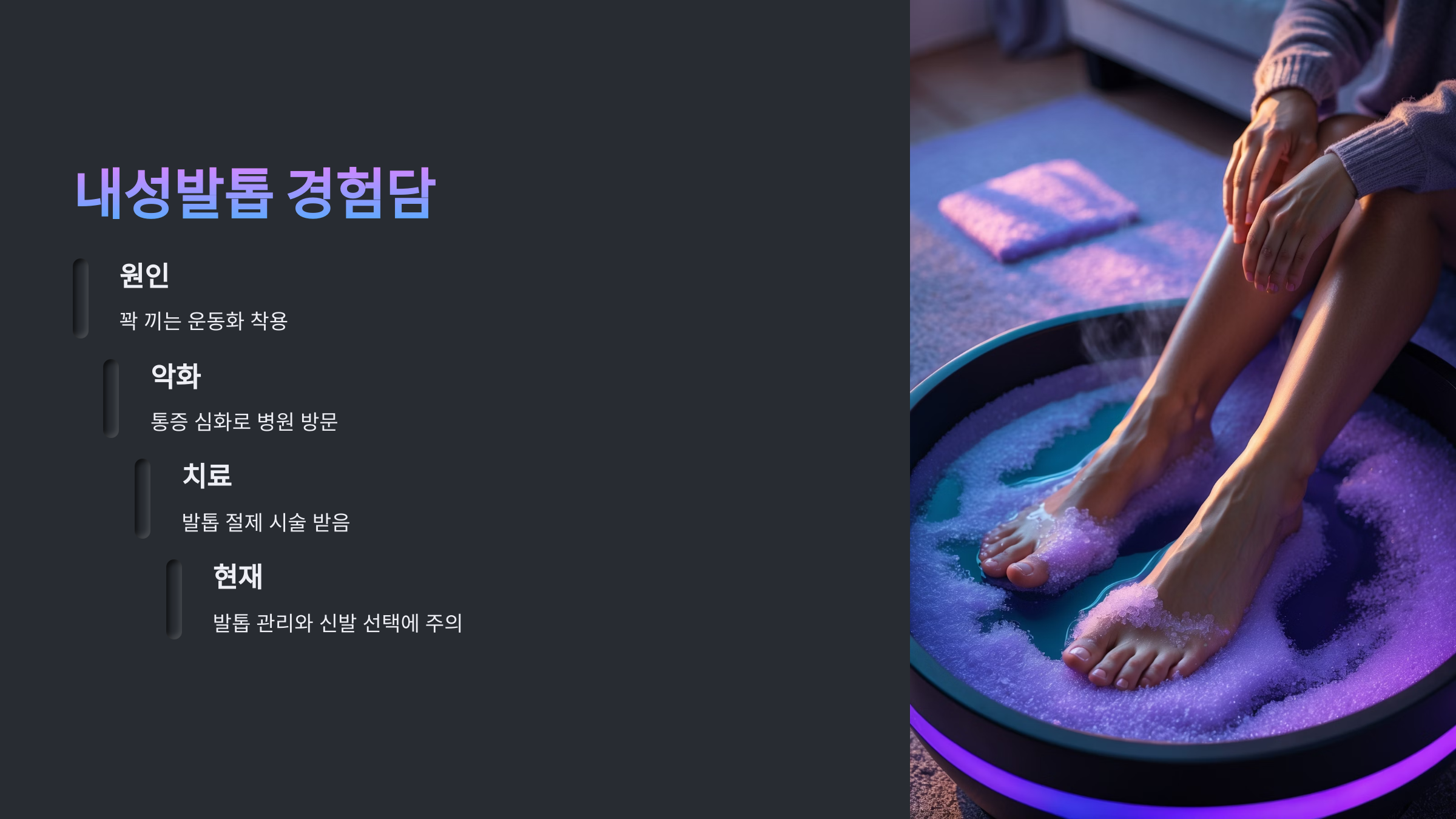 저는 몇 년 전, 운동화 하나 잘못 신었다가 내성발톱이 생겨서 정말 고생했거든요.