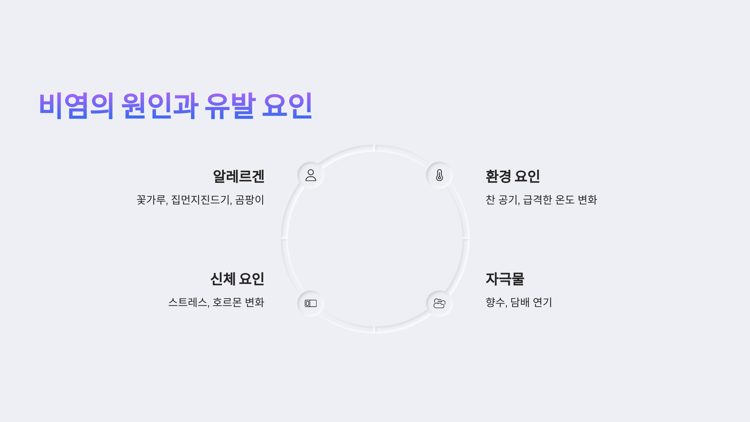 비염은 여러 가지 요소에 의해 유발될 수 있어요.