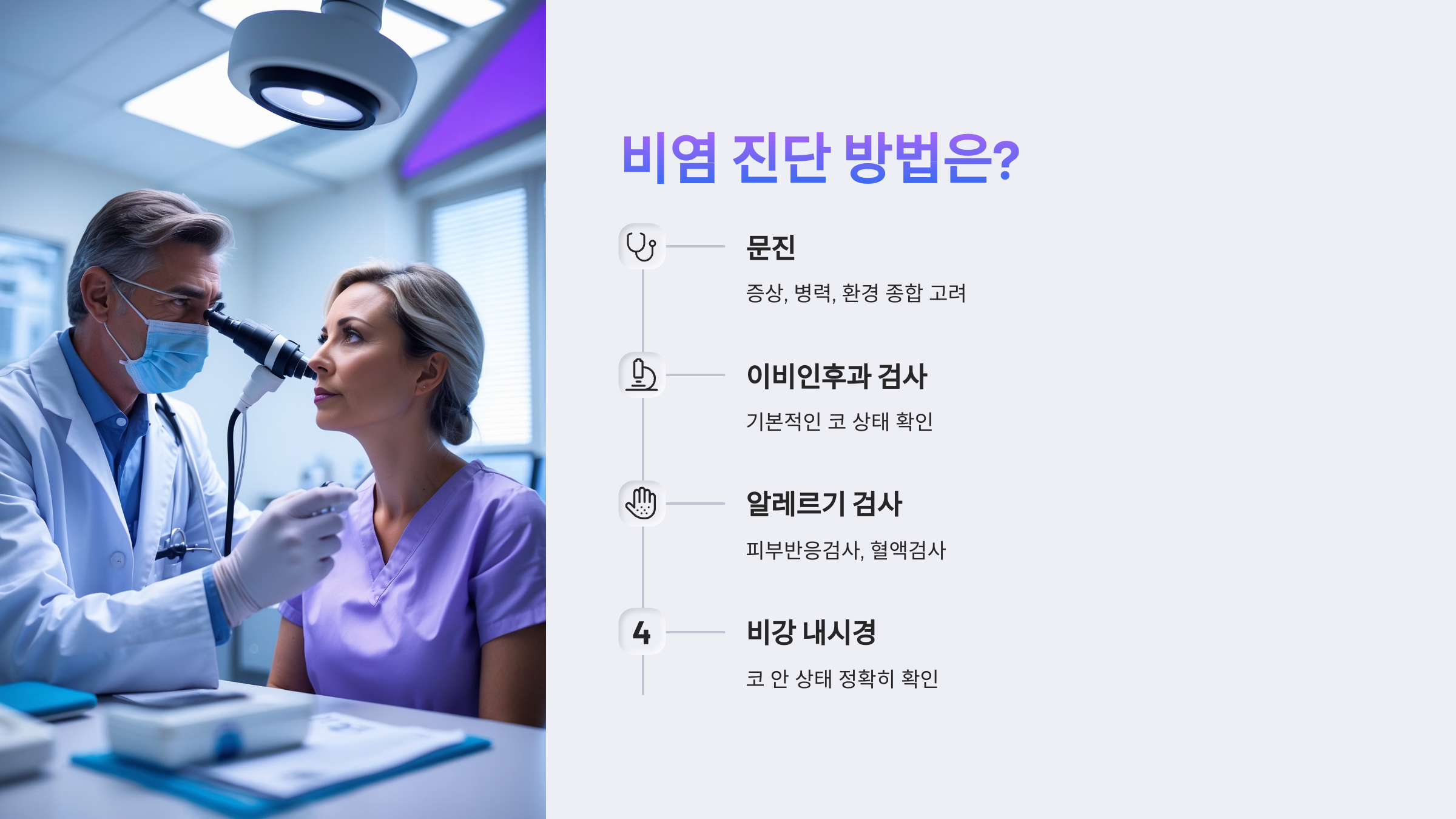 비염을 정확하게 진단하기 위해서는 환자의 증상, 병력, 환경 등을