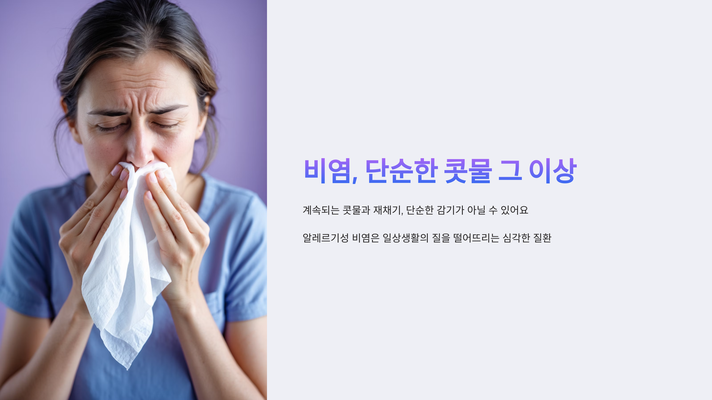 처음엔 감기인 줄 알았는데 병원에서 알레르기성 비염 진단을 받았죠.