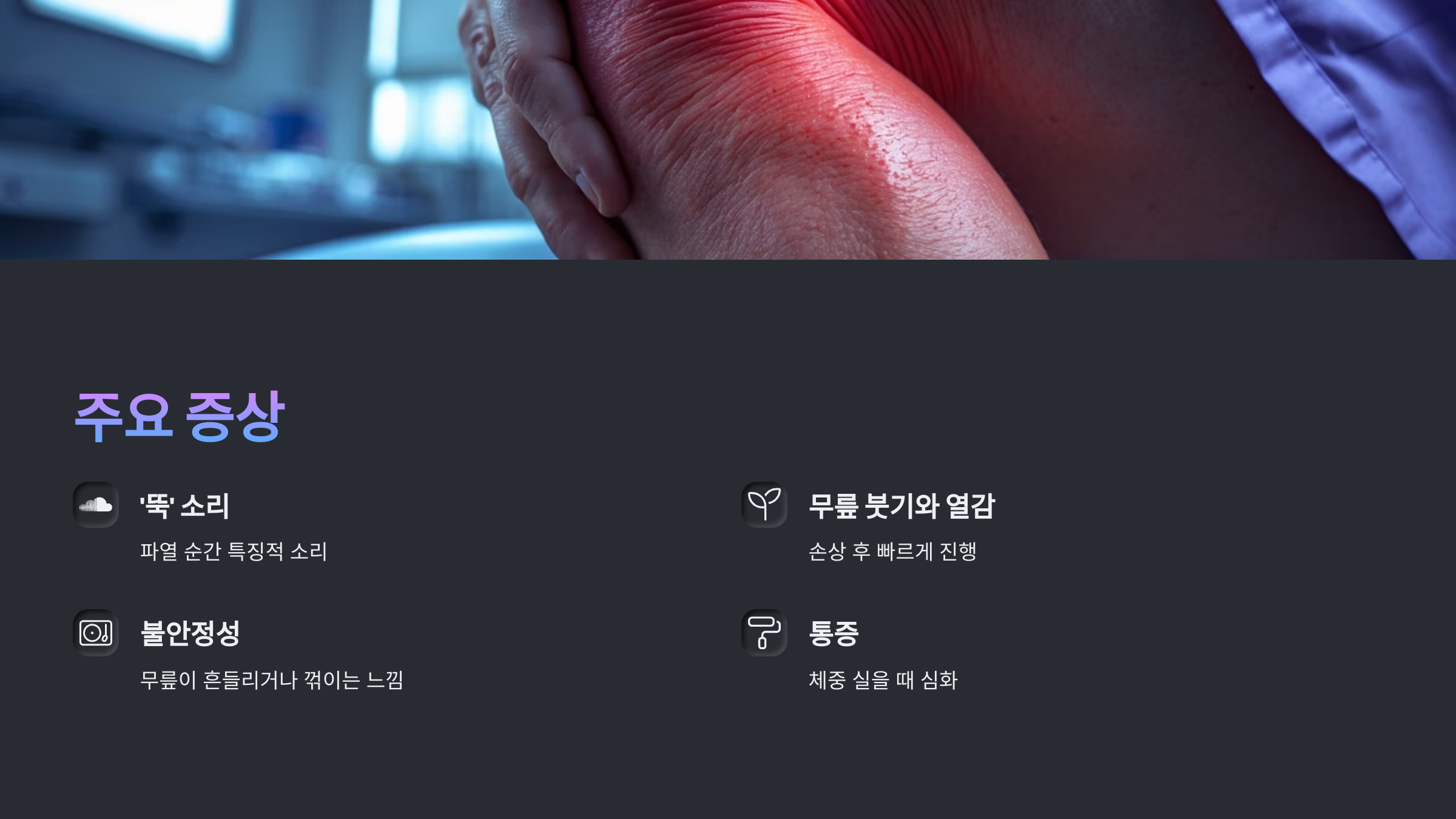 무릎에서 '뚝' 소리 들리고 붓는 느낌... 혹시 십자인대 문제 아닐까요?