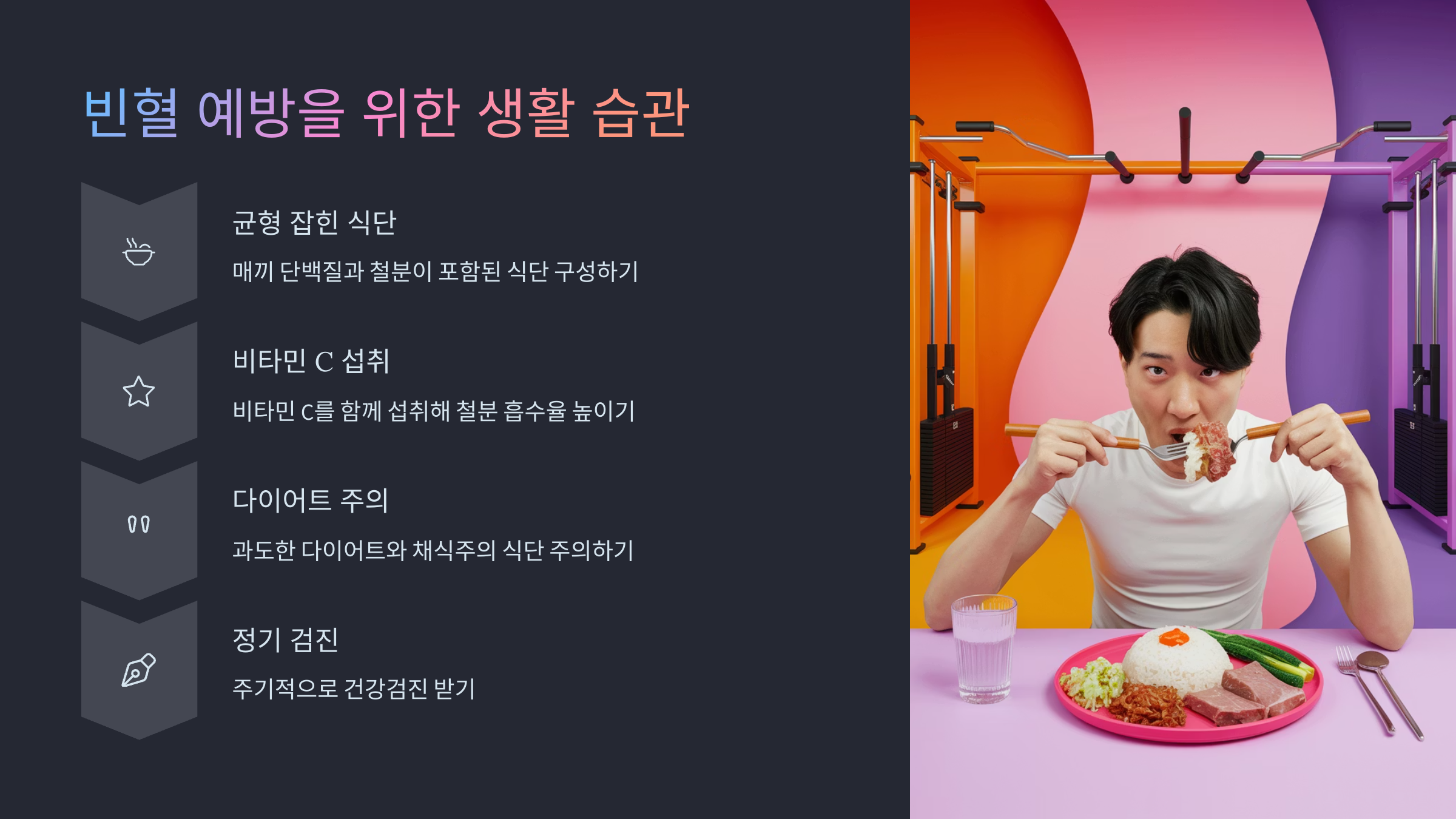 그래서 평소에 철분 섭취와 건강한 생활 습관이 무엇보다 중요하죠.