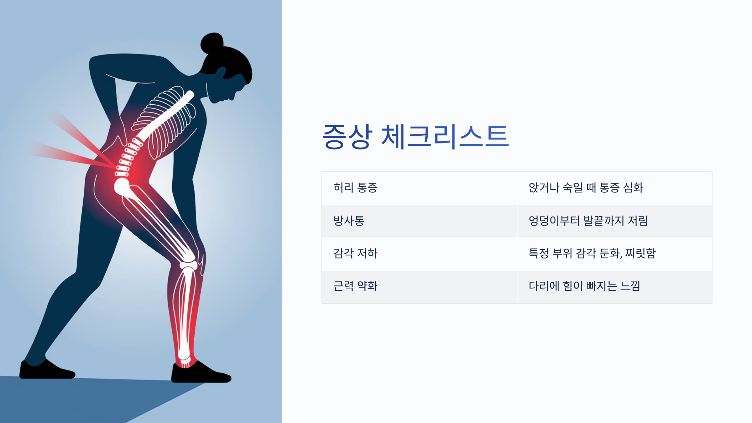 | 허리 통증 | 앉거나 숙일 때 통증이 심해짐 |