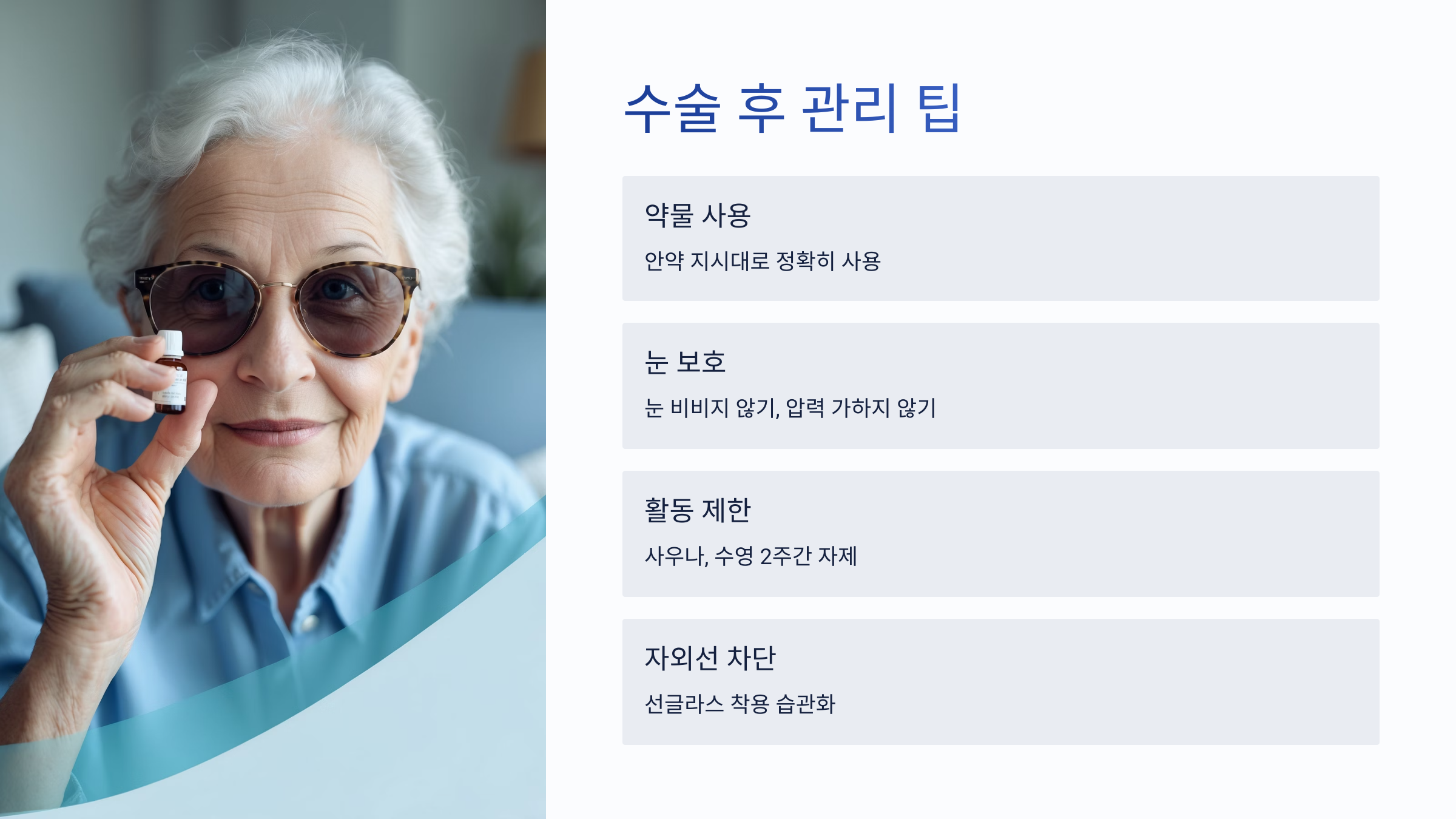 백내장 수술은 간단하지만, 수술 후 관리가 매우 중요해요.